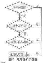 根據故障現象分析認為,有以下幾個方面會出現問題:位移傳感器、放大器單元、系統設定故障等。圖2為故障分析的步驟。